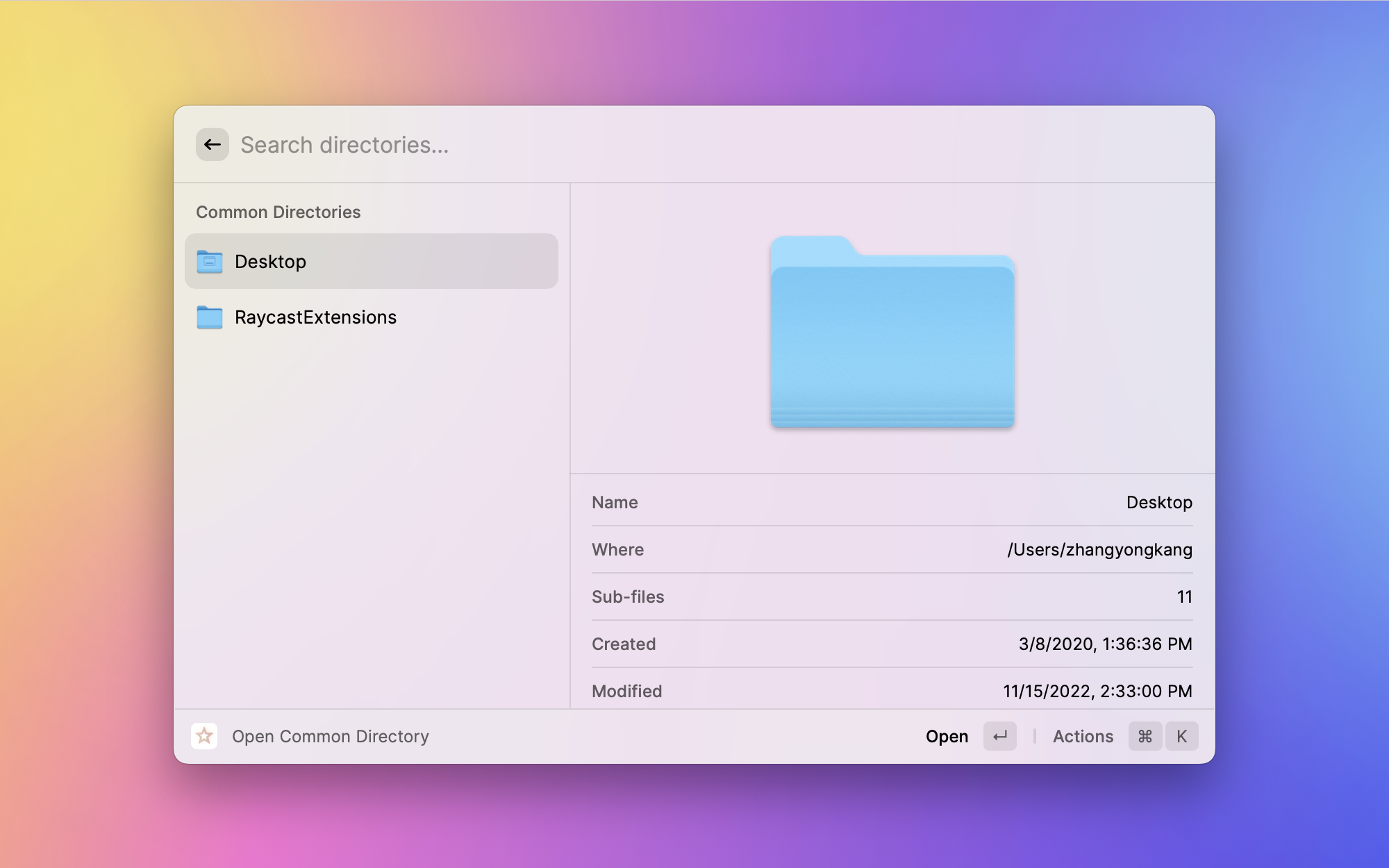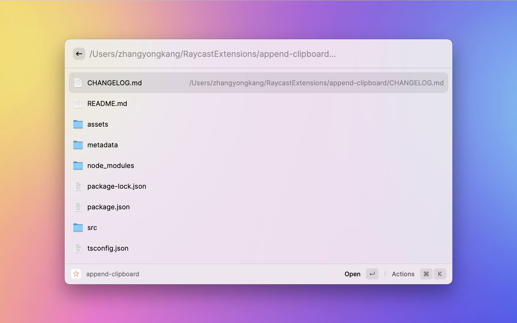 一个轻量级的文件管理方案,不用离开 Raycast 就能浏览文件系统。适合快速查找和打开文件,特别是知道大概路径但不想在 Finder 里一层层点进去的时候。