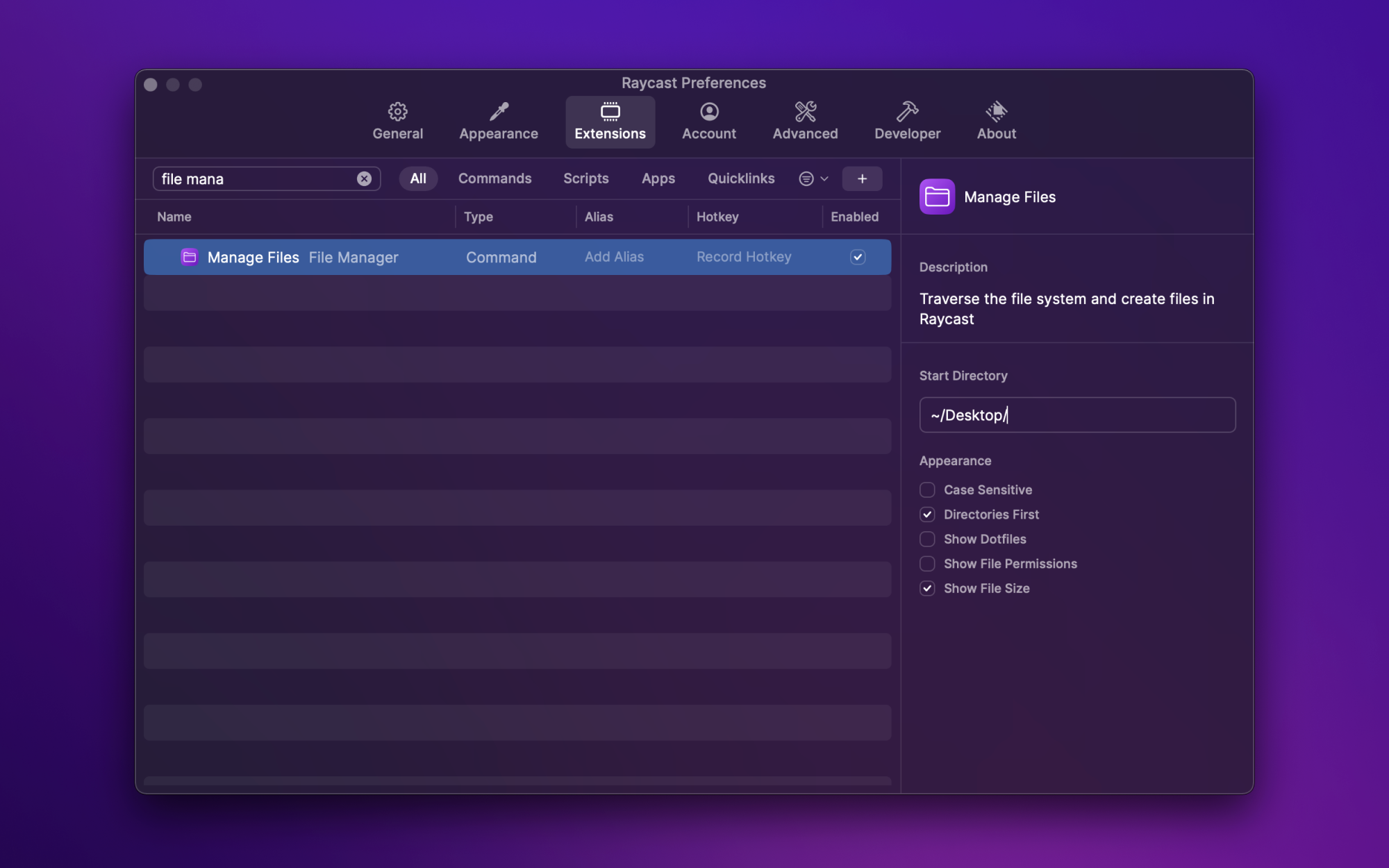 在 Raycast 中管理文件