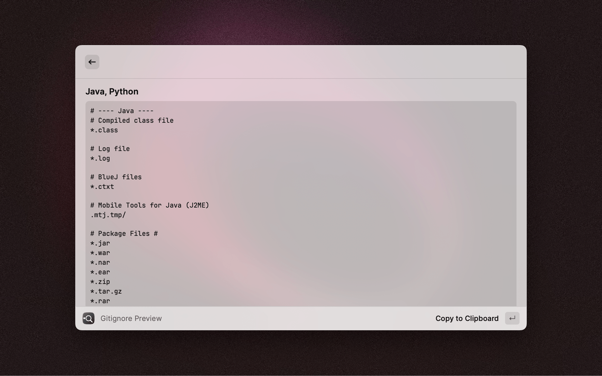 新建项目的时候总要配 .gitignore,这个插件内置了各种语言和框架的模板。搜索语言名称就能预览对应的 gitignore 内容,选中后直接生成文件到项目目录,比去 GitHub 上找模板方便多了。