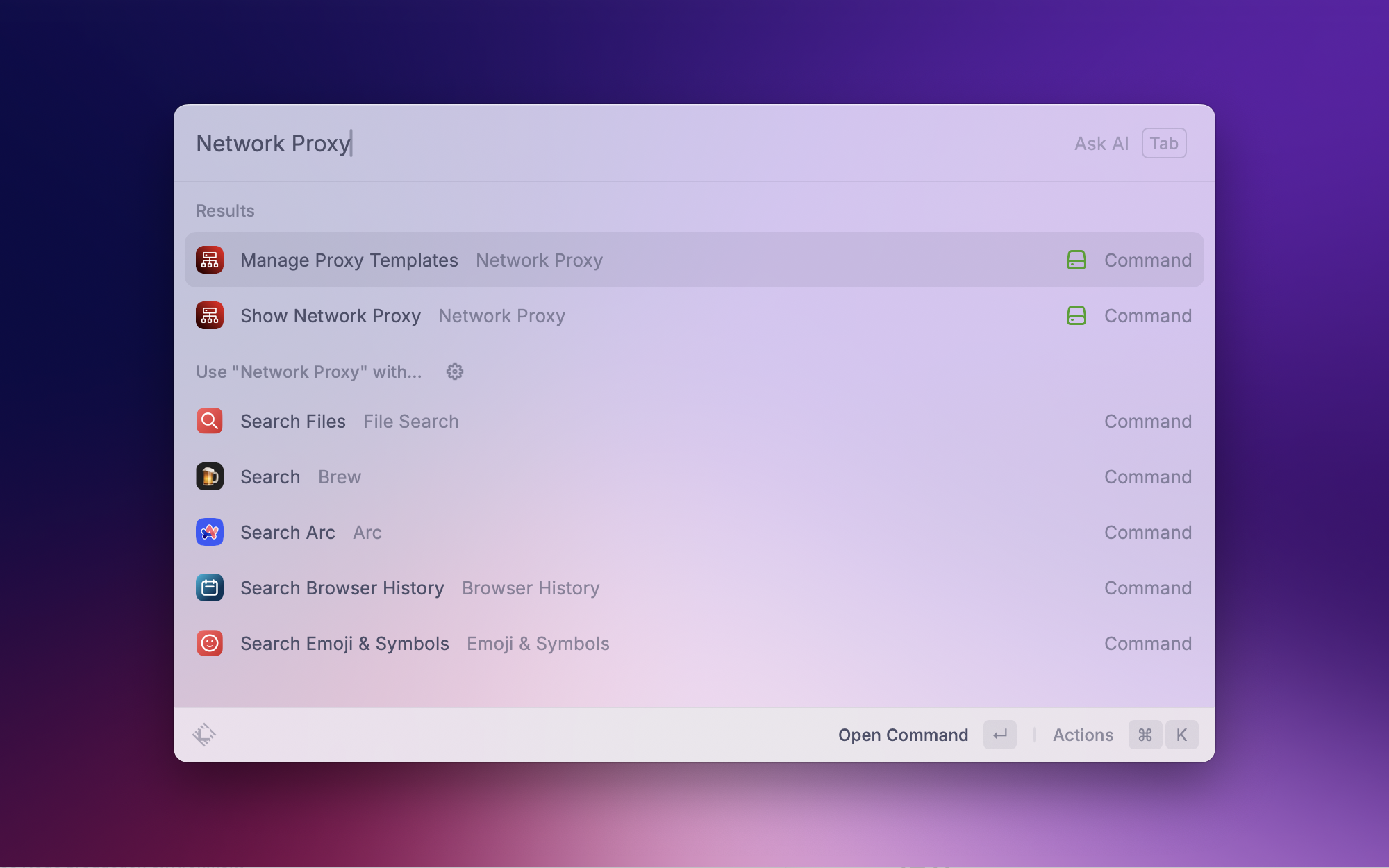 作为 Mac 开发者,Homebrew 是装机必备的包管理器。这个插件让我不用打开终端就能搜索、安装和更新软件包,直接在 Raycast 里完成所有操作。需要装个新工具的时候,呼出 Raycast 搜一下就行了,省去了记命令的麻烦。