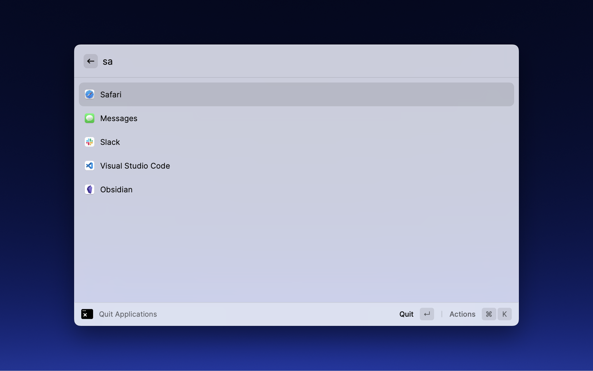 直接从 Raycast 退出应用