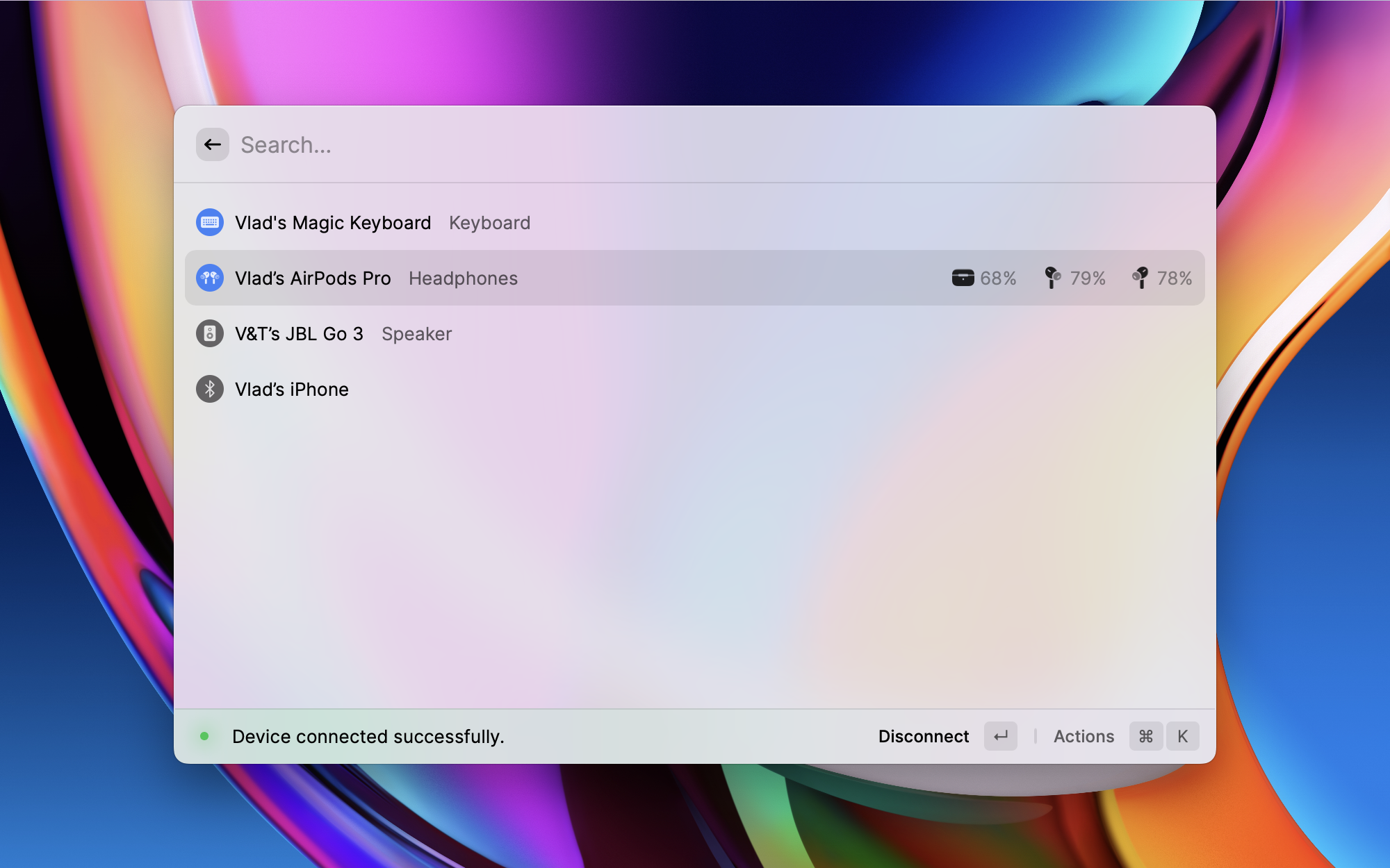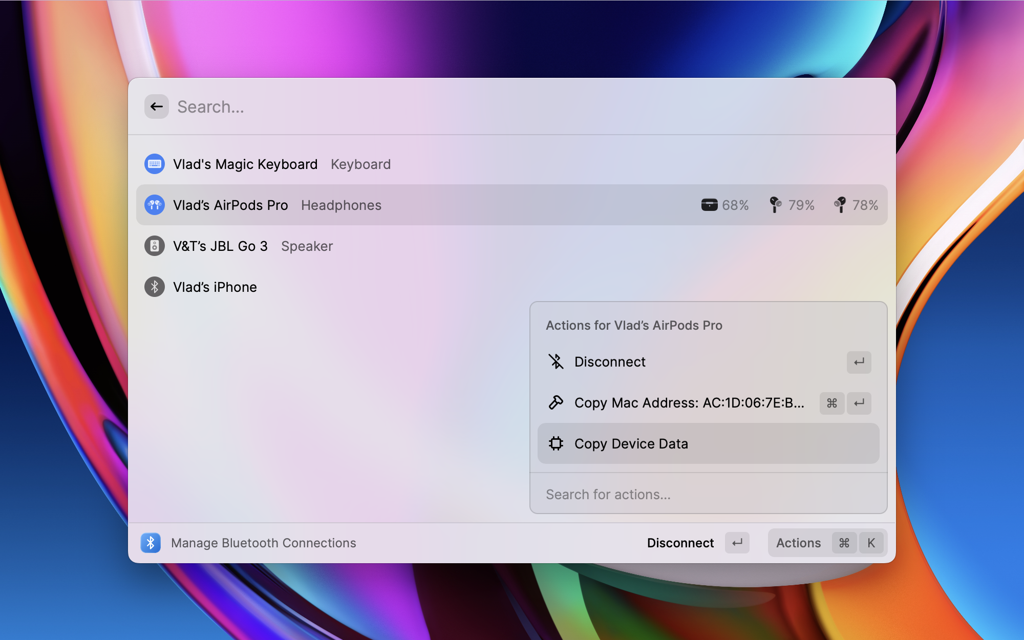 在 Raycast 中管理蓝牙连接
